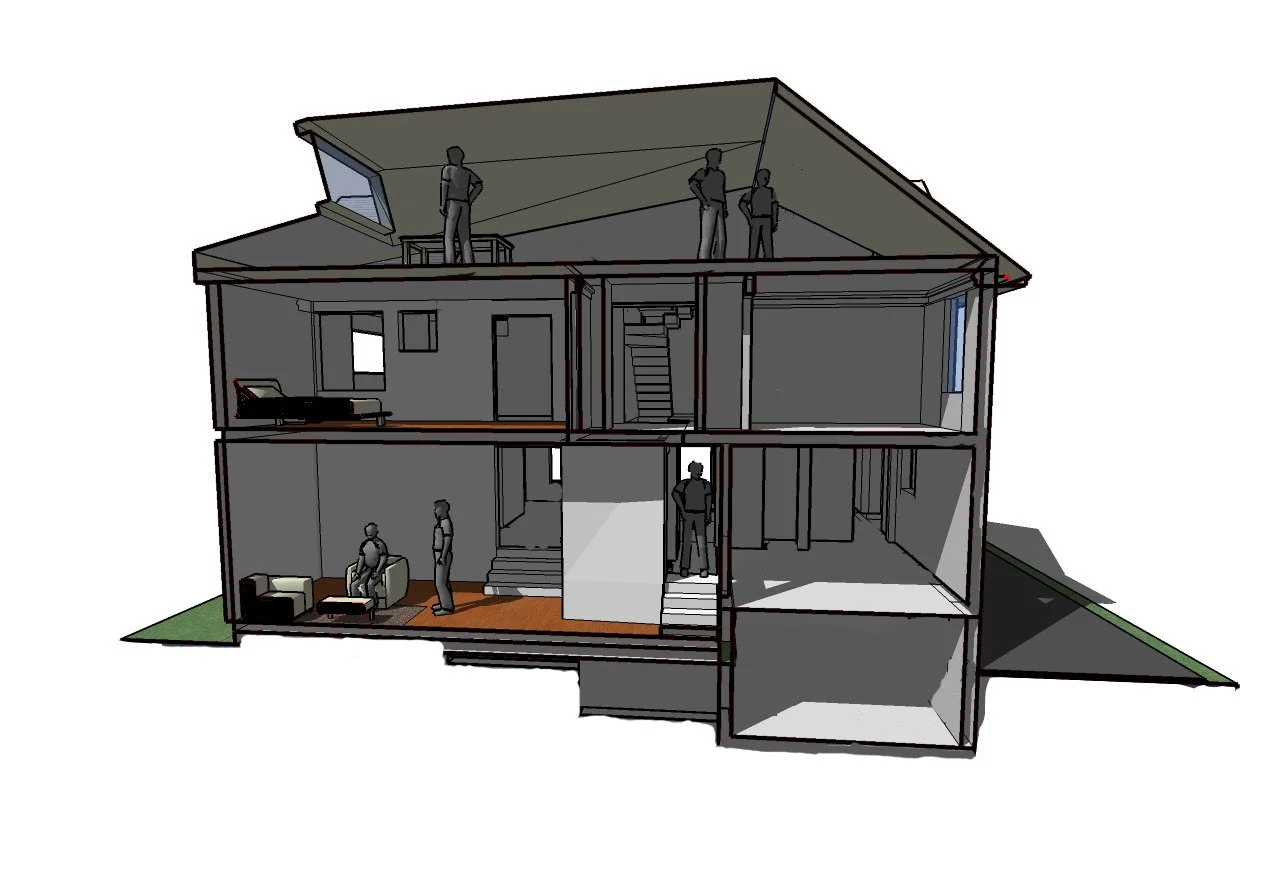 Located within the established neighborhoods of Montclair, the Zipstein Residence began as an unassuming American saltbox colonial with a central-hall plan and attic above—a familiar domestic type with little outward distinction. Yet its owners, a creative couple deeply engaged in photography, design, and contemporary culture, sought something entirely different from the conventional suburban renovation. They understood architecture as an artistic act and asked that the house become a more expressive setting for modern life.